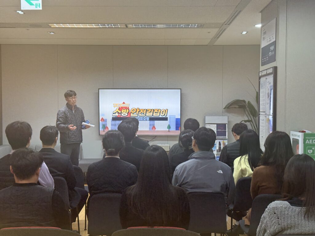 임직원들은 교육을 통해 화재 발생 시 가장 먼저 해야 할 행동, 피난 시 절대 놓치면 안 되는 포인트, 소화기 사용 전 반드시 확인해야 할 사항 등을 영상 자료를 통해 직관적으로 학습했습니다.