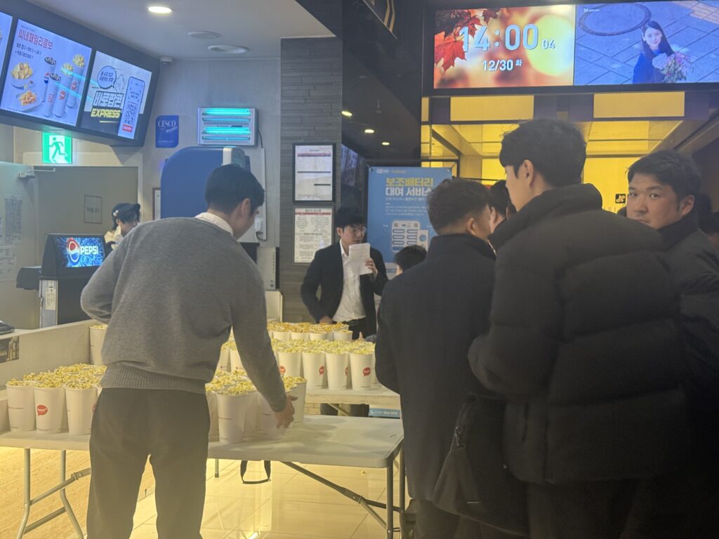 오후 2시에는 영화관에 도착해 팝콘을 수령하고, 행사관으로 이동해 본격적인 연말 행사가 시작됐습니다. 이어 간단한 안내와 함께 시상식이 진행되며, 한 해 동안의 노고를 돌아보는 시간이 마련됐습니다.